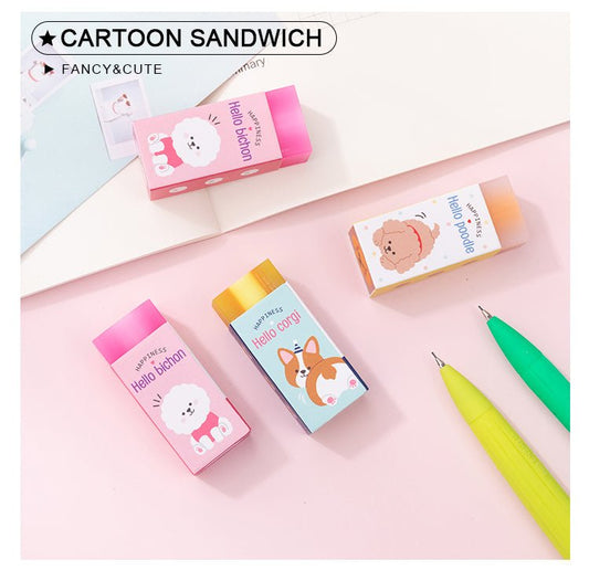 Sandwich Rubber Puppy Eraser - set of 3